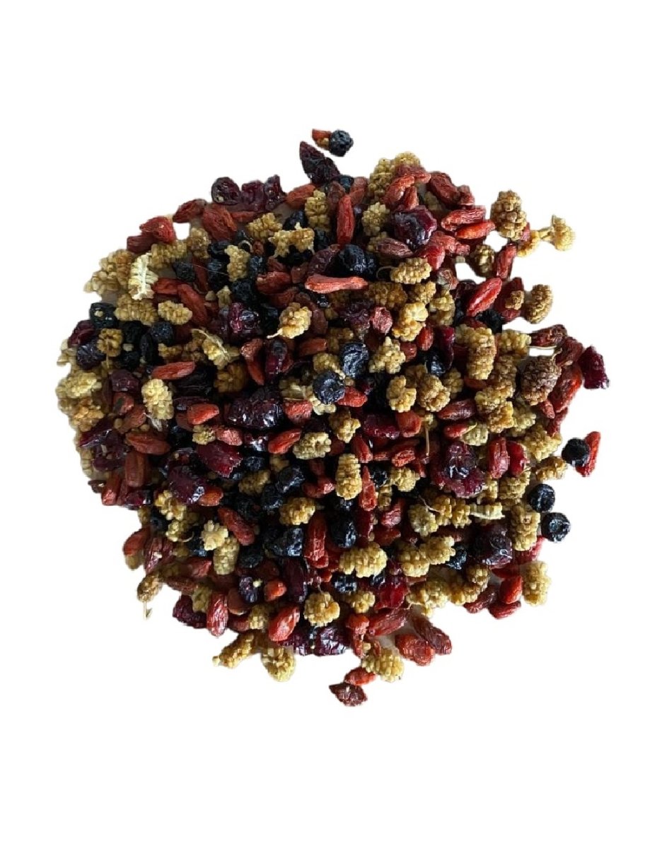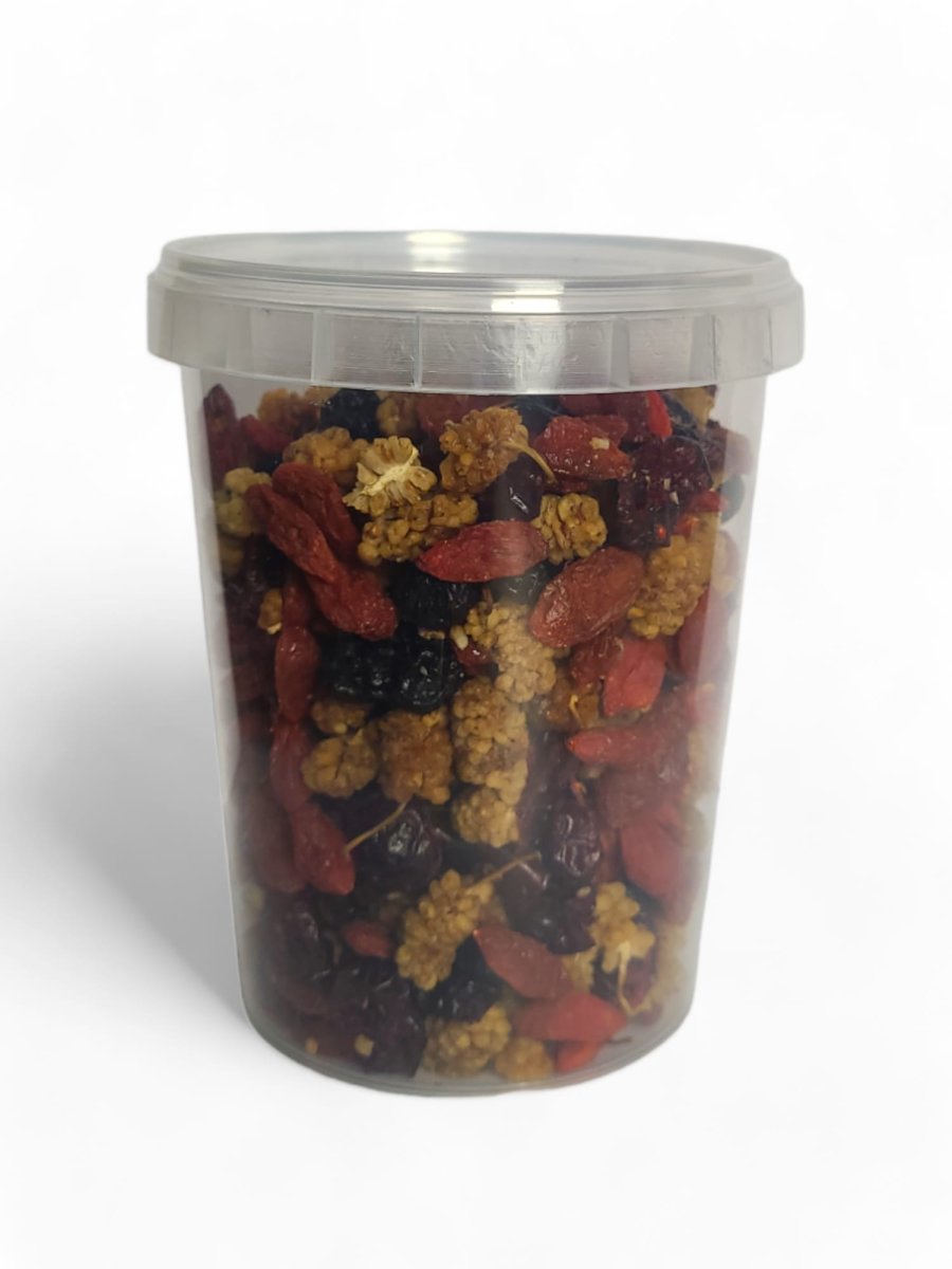 Een heerlijke mix bestaande uit verschillende bessen. Bevat onder andere gojibessen, blauwe bessen, cranberries en moerbeibessen.