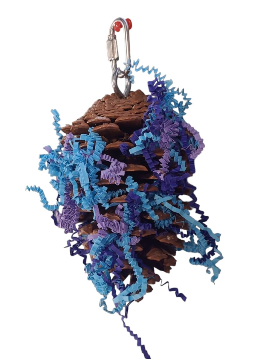 In de dennenappel kunnen zowel snacks en crinkle paper worden gestopt, om uw huisdier te kunnen laten foerageren.