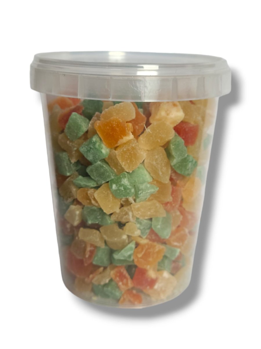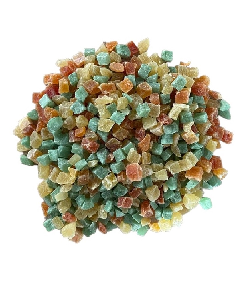 Een heerlijke mix van fruitblokjes voor uw kromsnavel en/of knaagdier Bevat ananas, papaya groen en papaya rood.