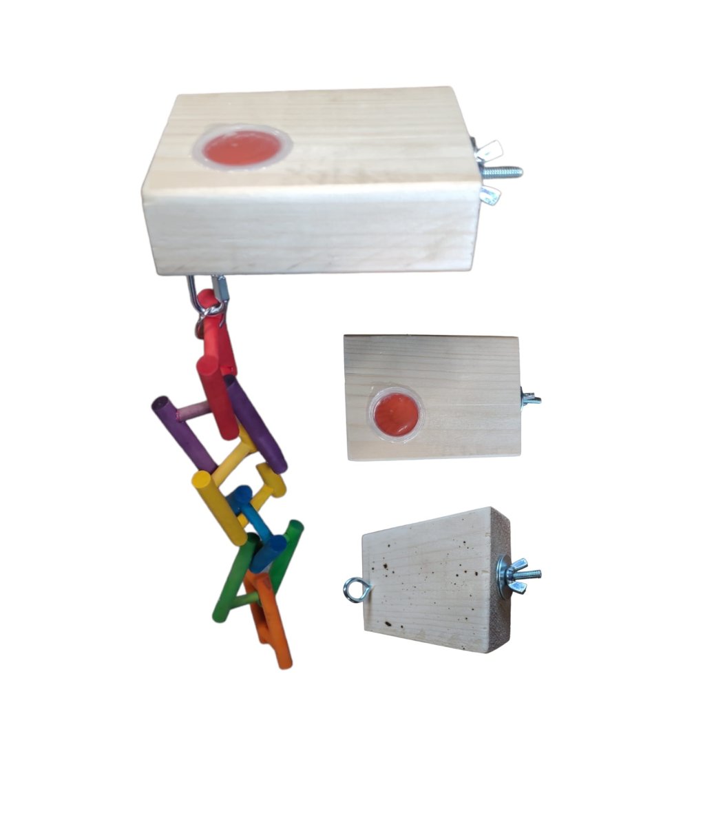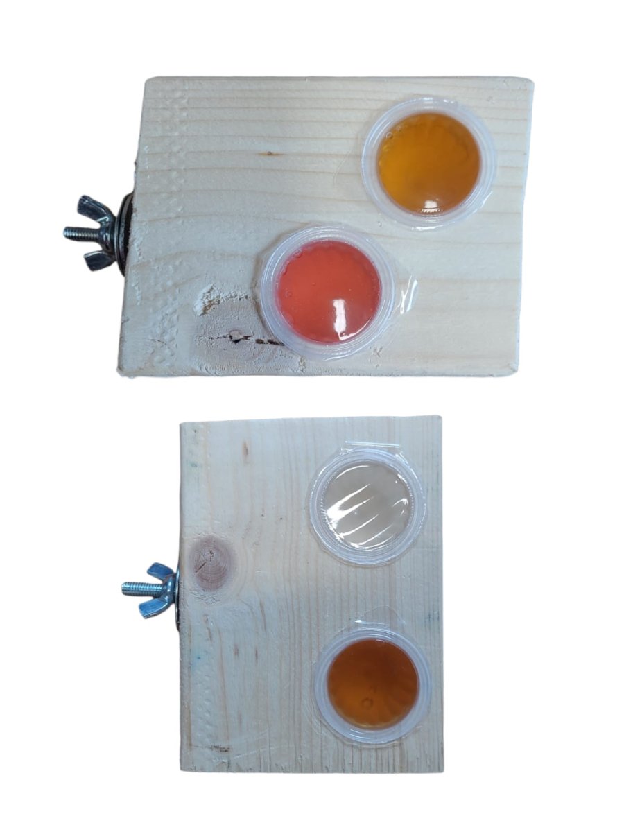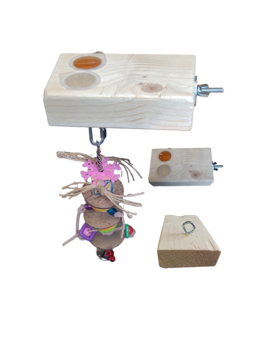 BYoshi nature dubbele fruitkuiphouder is een leuk extraatje voor in de vogelkooi. Onderin de fruitkuiphouder is een oogje bevestigd om een speeltje naar wens op te hangen. De fruitkuiphouder is aan de kooi te bevestigen door middel van de vleugelmoer systeem. Het hout is onbewerkt, en dus veilig voor de kromsnavels.