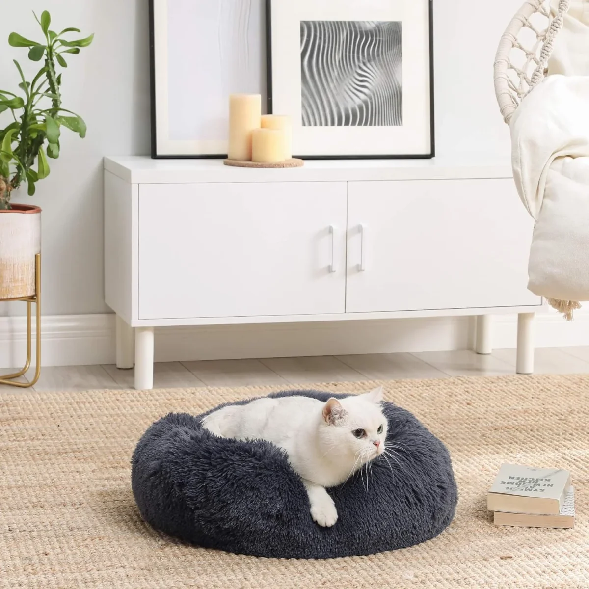 Ons wasbare donutbed voor huisdieren biedt een slimme oplossing voor katten en honden die behoefte hebben aan geborgenheid en comfort.