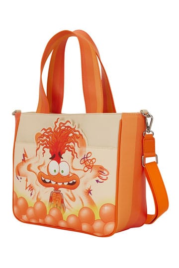 Deze tote bag is geïnspireerd op Anxiety uit Disney en Pixar’s Inside Out 2. Je vindt haar vooraan en in het midden op de tas, omringd door oranje geheugenkogels. Draai de tas om en je ziet nog meer oranje geheugenkogels en Riley’s angstige Sense of Self. Bovendien zit er een muntzakje aan de riem met aan de ene kant Riley’s angstige Sense of Self en aan de andere kant Anxiety.