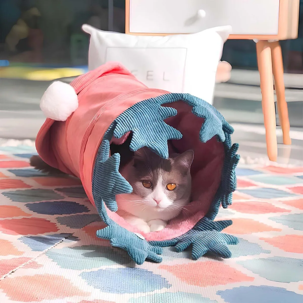 Onze hond en kat tunnelbed biedt een inventieve oplossing voor comfortabel rusten en speels verstoppen.