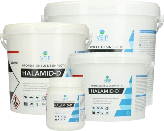 Halamid-D gaat een chemische reactie (feitelijk een verbrandingsreactie) aan met micro-organismen. Resistentievorming is daardoor niet mogelijk. Het middel gaat de strijd aan met bacteriën, gisten en virussen. De kracht van Halamid-D is het brede werkingsspectrum enerzijds en de mildheid voor de gebruiker, voor materialen en voor de dieren en het milieu anderzijds. Halamid-D wordt per emmer in poedervorm en inclusief een maatschepje geleverd, waardoor het gemakkelijk en nauwkeurig te doseren is. Het desinfectiemiddel lost gemakkelijk op in water (maximale concentratie 10% bij 15°C). Door het milde karakter is Halamid-D niet corrosief op metalen en andere materialen. Gebruik biociden veilig. Lees vóór gebruik eerst het etiket en de productinformatie.