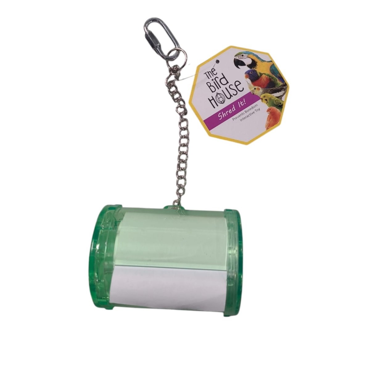De Shred it van Happy pet is een acryl houder met een rol papier, die jouw parkiet of papegaai kan uitrollen en versnipperen. Te bevestigen in de kooi door middel van een quicklink. De Shred it word geleverd met 1 rolletje papier. Geschikt voor parkieten en kleine tot middelgrote formaat papegaaien. De Shred it rollen zijn als navulling los te bestellen!