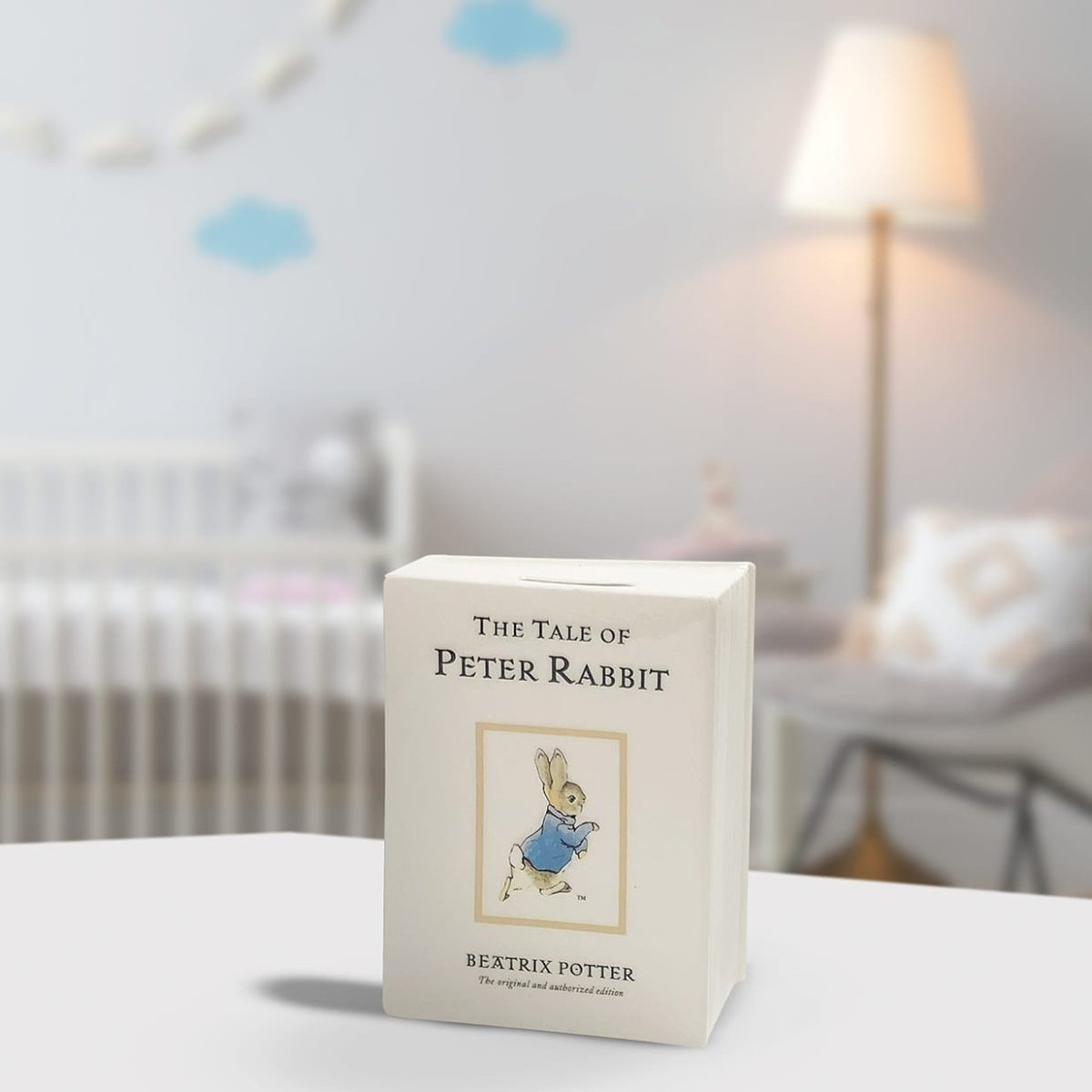 Peter Rabbit biedt je de perfecte manier om geld te sparen. Deze spaarpot is prachtig vormgegeven en heeft de klassieke versie van Peter Rabbit in de vorm en het design van een spaarpot gegoten. Een schattig cadeau voor een pasgeboren baby of klein kind ter ere van hun doop of om als aandenken te geven. Enesco produceert al sinds 1987 de licentie voor ‘De Wereld van Beatrix Potter’-producten. Sindsdien is de collectie uitgebreid met vele verschillende formaten. De illustraties voor elk product zijn gebaseerd op de originele illustraties uit de Beatrix Potter-verhalen. Deze keramische spaarpot wordt geleverd in onze gloednieuwe merkverpakking.