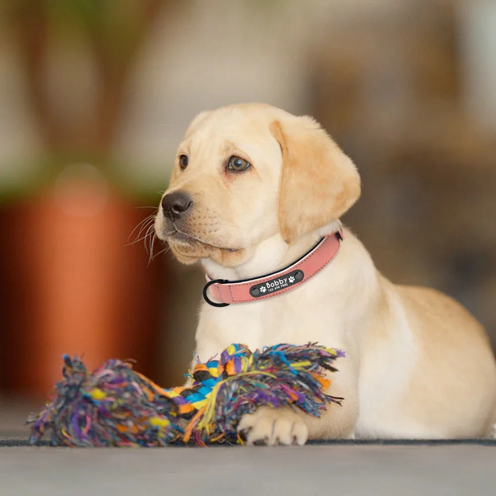 Stijlvolle lederen halsband met gepersonaliseerde ID-tag