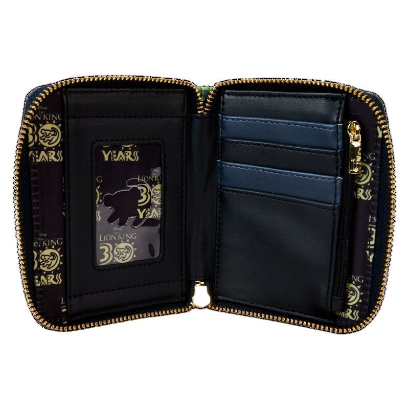 De Lion King 30th Anniversary Hakuna Matata Silhouette Zip Around Wallet is gemaakt van veganistisch leer (polyurethaan). Portemonneeritsen gesloten met glanzende gouden hardware. Extra functies zijn onder meer reliëf, glow-in-the-dark en gedrukte details. Let op de bijpassende binnenvoering.