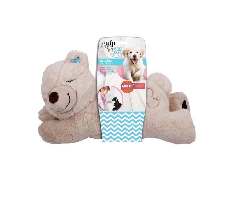 Deze zachte beer is voorzien van een zak met tourmaline steentjes. Plaats deze zak in de magnetron voor 45 seconden (800 Watt) en plaats de zak terug in de beer. Op deze manier heeft je puppy een lekker warm knuffelbaar vriendje.
