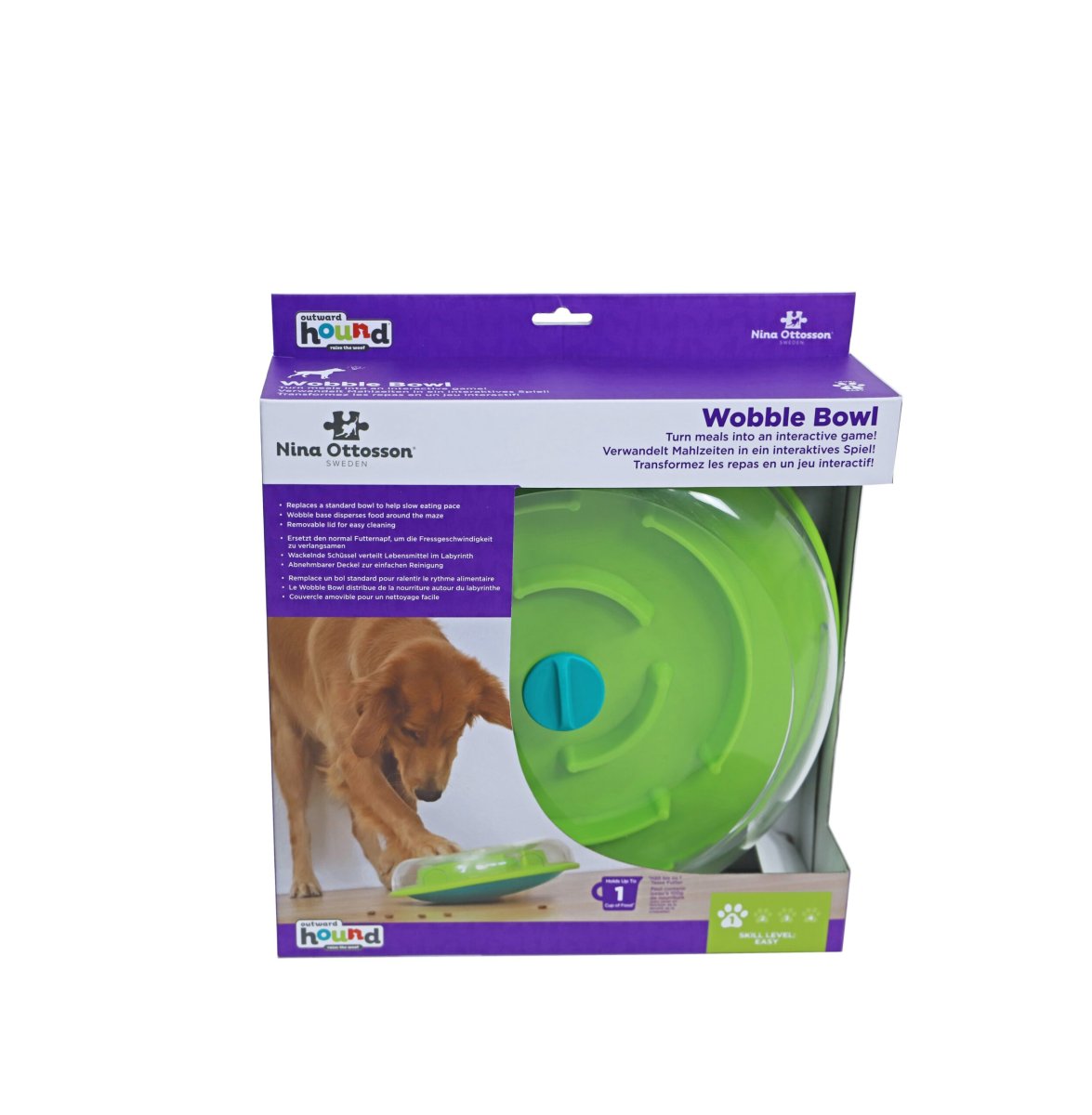 Nina Ottosson wobble bowl is een slow feeder en puzzel in één! De wobble bowl verandert maaltijden in een interactief spel! Houdt honden betrokken en verlengt de maaltijd.