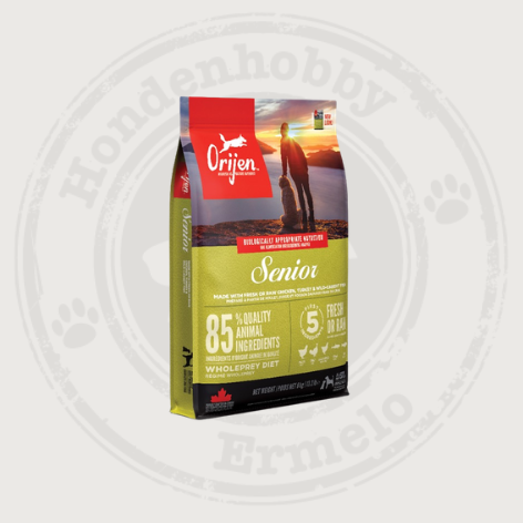 Houd je hond in topconditie met uiterst voedzame eiwitrijke voeding. Honden zijn rasechte carnivoren en gedijen het best bij gevarieerde, Biologically Appropriate voeding met hele dierlijke ingrediënten. ORIJEN™ Senior is speciaal ontwikkeld om oudere honden gezond te houden door de opbouw van vetvrije spiermassa te bevorderen en een gezond gewicht te ondersteunen. De voeding bevat de meest voedzame en sappige delen van het prooidier en zit boordevol dierlijke WholePrey-ingrediënten zoals organen en botten. Deze ongeëvenaarde voeding bevat 85%** hoogwaardige dierlijke ingrediënten en heeft een coating van gevriesdroogde lever.