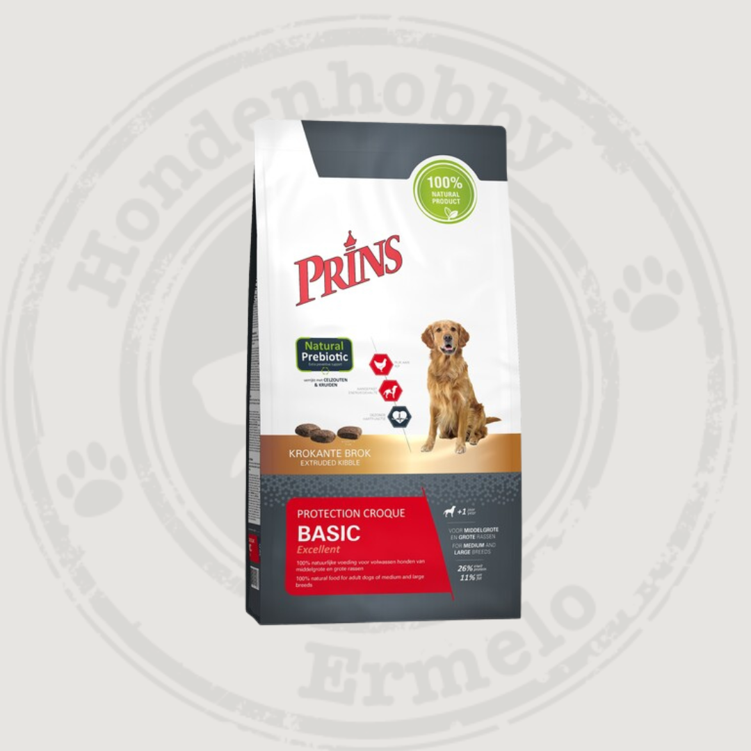 Protection Croque Basic Excellent is een krokante voeding voor volwassen honden van middelgrote en grote rassen. De voeding is ook geschikt voor gesteriliseerde en gecastreerde honden en honden die snel neiging hebben tot overgewicht. Deze volledige voeding, verrijkt met zalmolie, FOS, kruidenextracten en Schüssler celzouten, draagt bij aan een gezonde hartfunctie en ondersteunt de botten en gewrichten. Een aangepast energiegehalte helpt een gezond gewicht te handhaven.