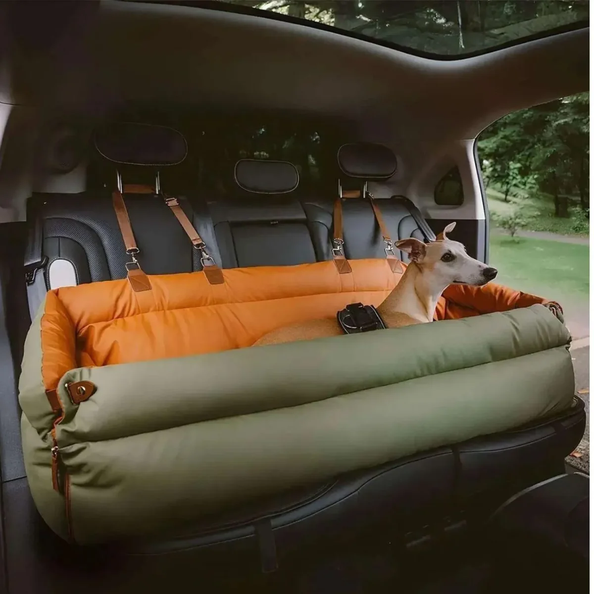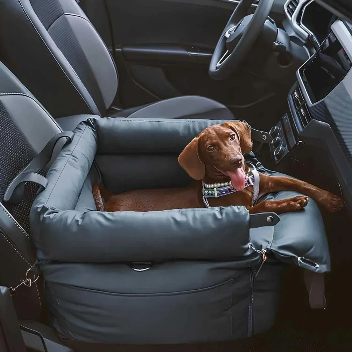 Onze extra grote kunstleren autostoel biedt een slimme oplossing voor comfortabel en veilig reizen met uw hond.