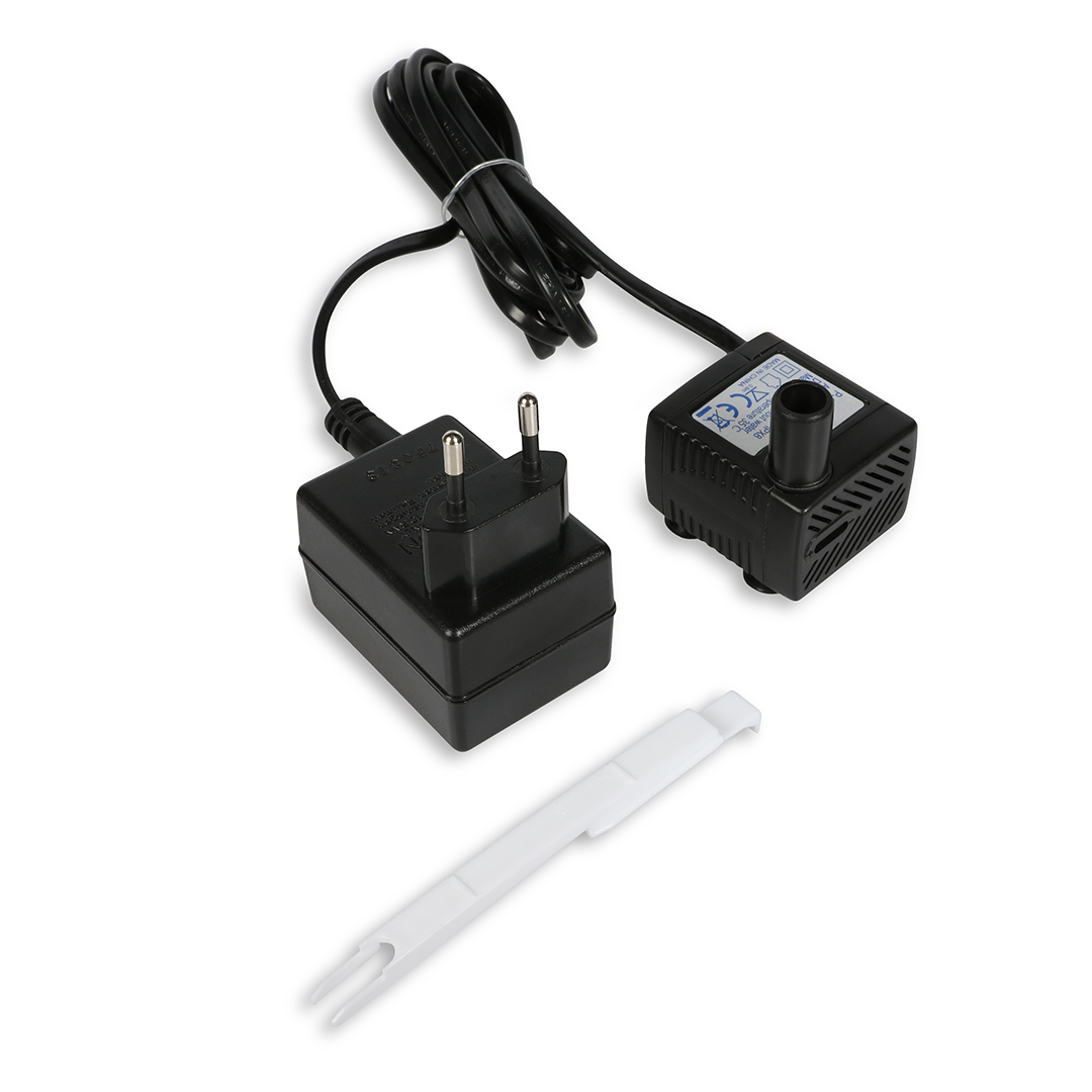 Stil en makkelijk vervangend pompje voor de Cascade en de Mango. Versie van 12 volt, dus helemaal veilig voor je viervoerter. De kabel is 2 meter lang dus zeer handig in gebruik. De bevestiging gebeurt met zuignappen.