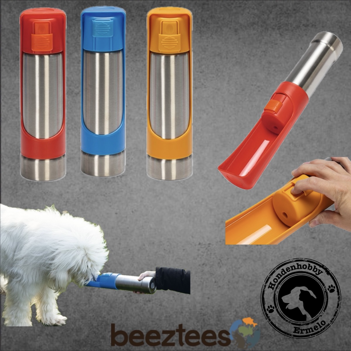 Houd het drinkwater voor onderweg heerlijk vers en cool door gebruik te maken van deze Beeztees Drinkfles Loe. Doordat deze honden drinkfles gemaakt is van RVS, blijft het water langer op een aangename temperatuur. De drinkfles is eenvoudig in gebruik. Draai de RVS fles los van het plastic gedeelte om deze te vullen met water. Heeft jouw hond dorst? Schuif het plastic gedeelte dan naar boven, je zult zien dat er een waterbak ontstaat. Schuif vervolgens het schuifgedeelte op de dop naar beneden zodat je de knop van de drinkfles ziet. Wanneer je deze knop indrukt, zal het water in de drinkbak stromen. Is jouw hond klaar met drinken? Druk de knop dan weer in en schuif de knop terug. Vervolgens schuif je het plastic drink gedeelte weer naar beneden en jullie kunnen weer verder gaan genieten van jullie avontuur.