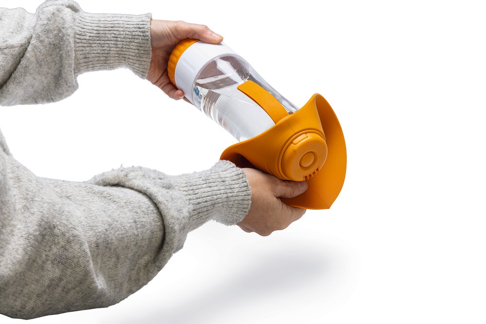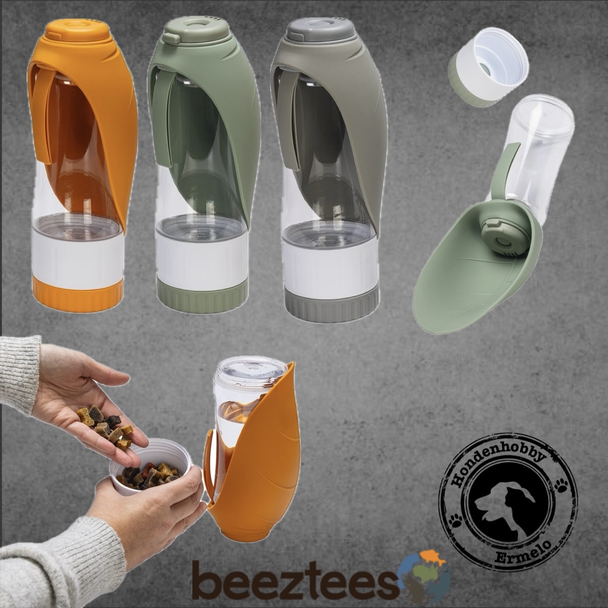 Met Beeztees Drinkfles Nel kun je altijd schoon drinkwater meenemen voor jouw hond. Deze honden drinkfles is multifunctioneel. Naast dat de fles een geïntegreerde waterbak heeft, is er aan de onderzijde een extra compartiment toegevoegd waar je hondensnacks in kunt bewaren. Om jouw hond te laten drinken, klap je het silicone blad naar boven. Vervolgens druk je op de ronde knop bovenop de dop in en het water zal in het blad stromen. Is jouw hond klaar met drinken? Dan kun je het water weer terug in de fles laten lopen om verspilling tegen te gaan. Hierna druk je het knopje aan de zijkant in, zodat je de fles weer afsluit. Het snackbakje vul je eenvoudig door deze los te draaien van de fles. Wanneer je jouw hond onderweg wilt belonen, draai je aan de knop aan de onderzijde waarna je wat snacks uit het bakje kan halen.